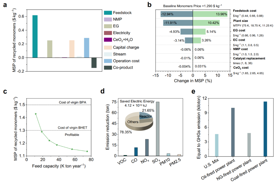 圖6. 光熱催化選擇性回收混合聚酯塑料的技術(shù)經(jīng)濟分析。