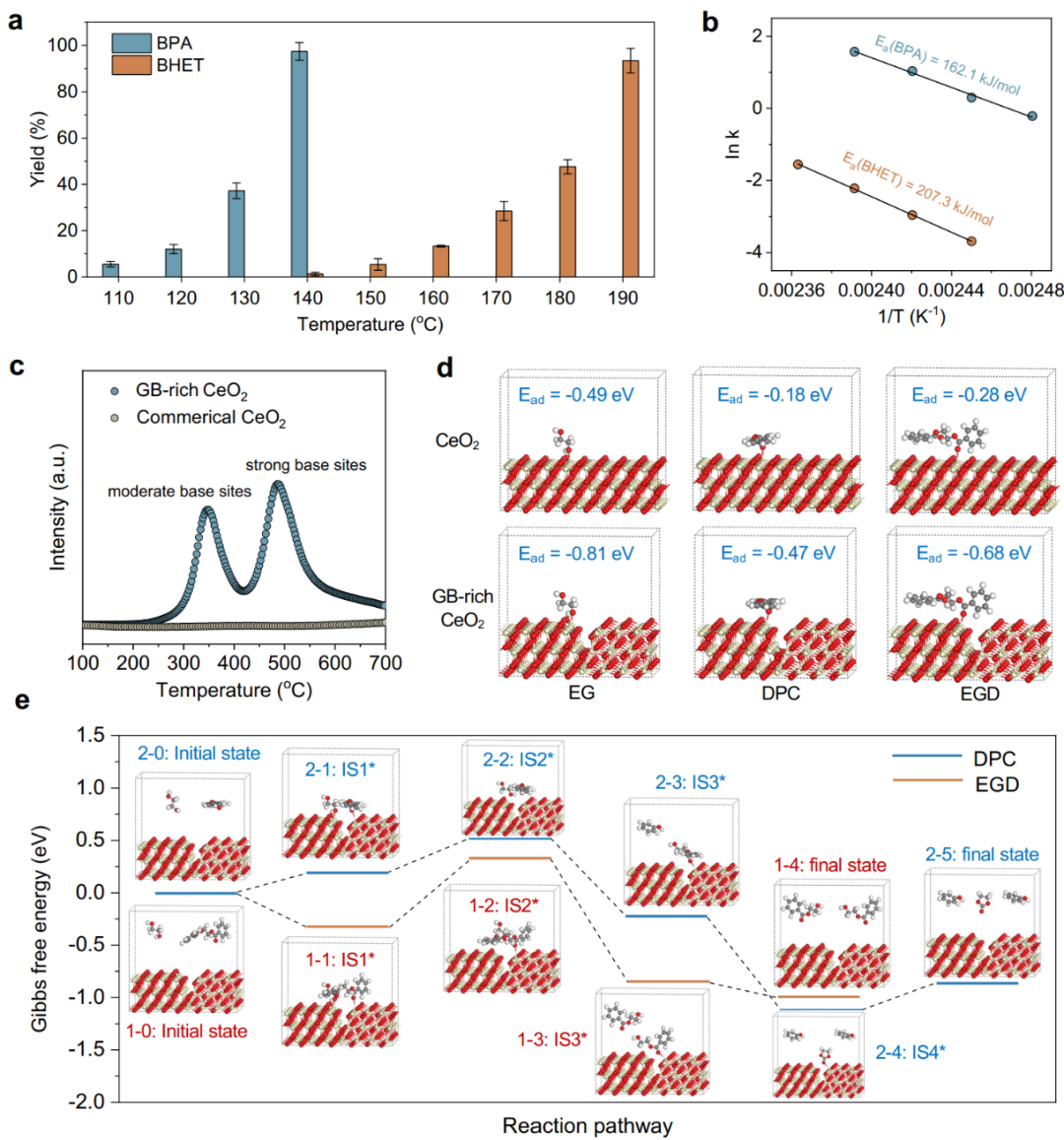 圖4. GB-rich CeO2催化劑選擇性解聚PC/PET混合塑料構(gòu)-效關(guān)系研究。