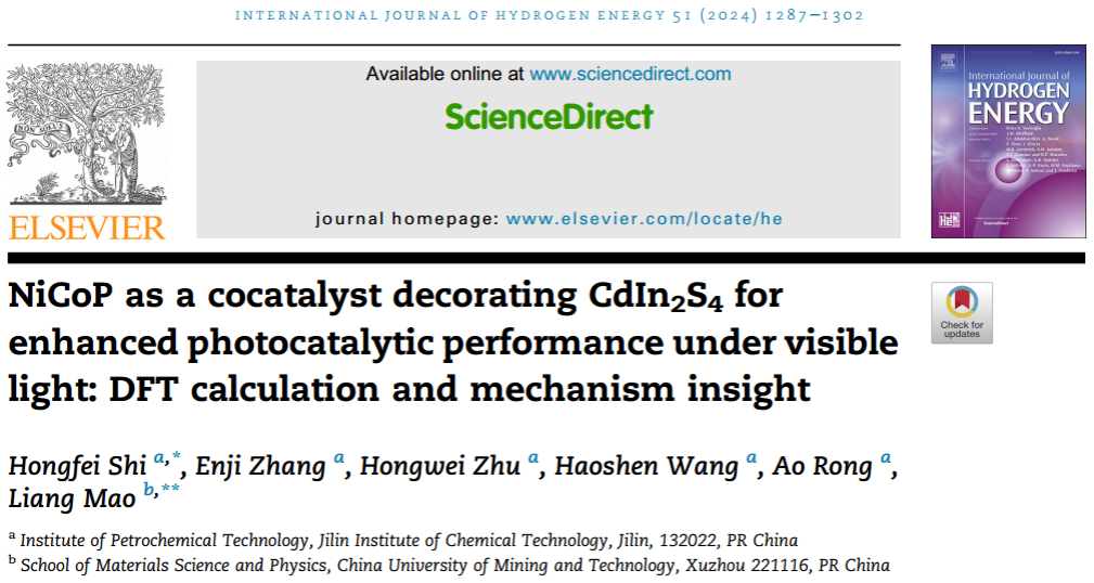 標(biāo)題:NiCoP as a cocatalyst decorating CdIn2S4 for enhanced photocatalytic performance under visible light: DFT calculation and mechanism insight
