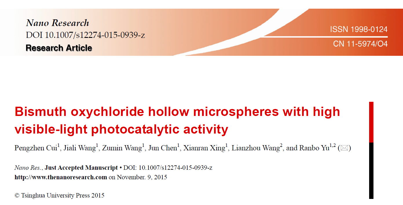 當(dāng)前位置 : 首頁 > 資訊動態(tài) > 論文發(fā)表 > Bismuth oxychloride hollow microspheres with high visible-light photocatalytic activity