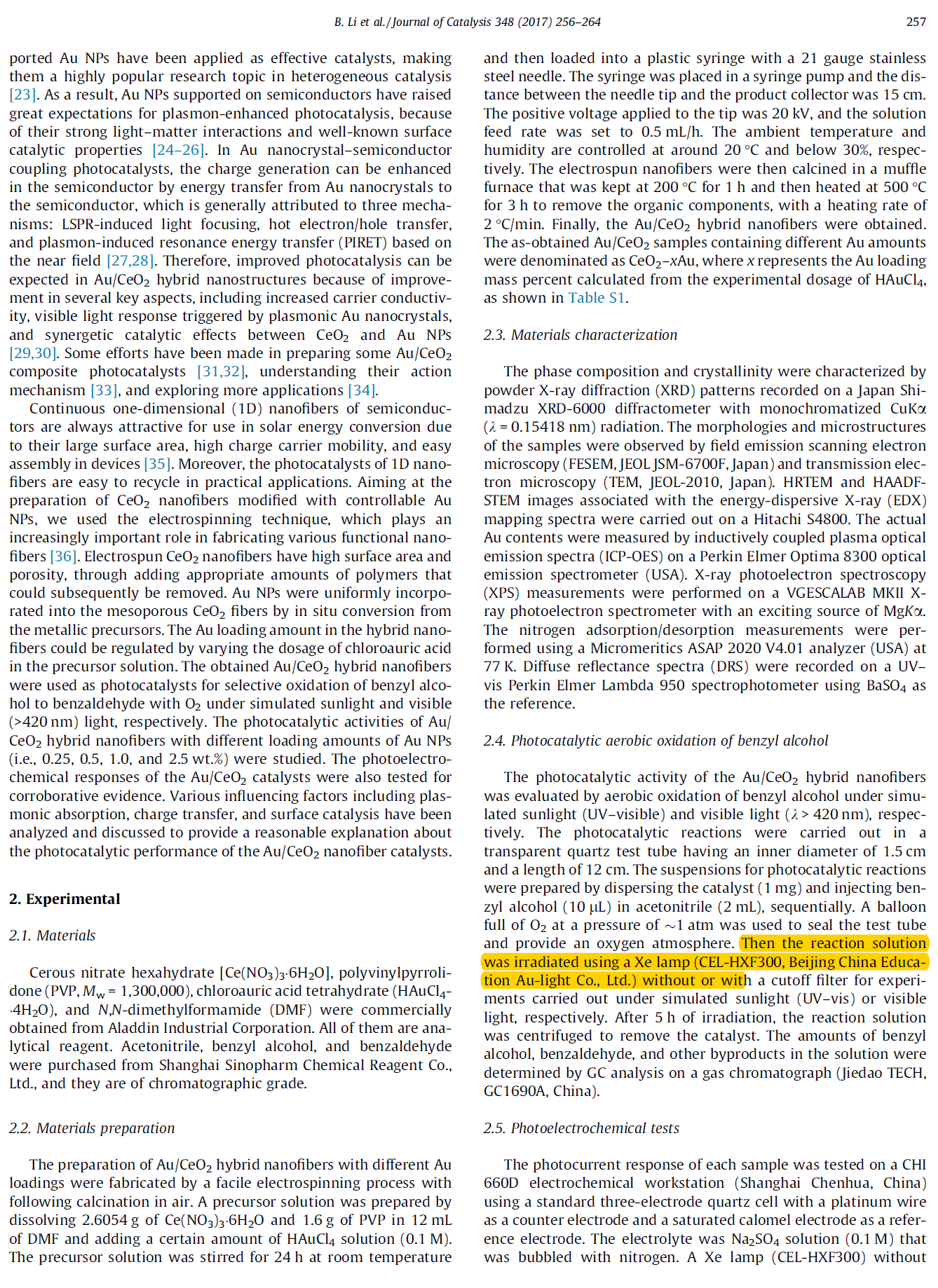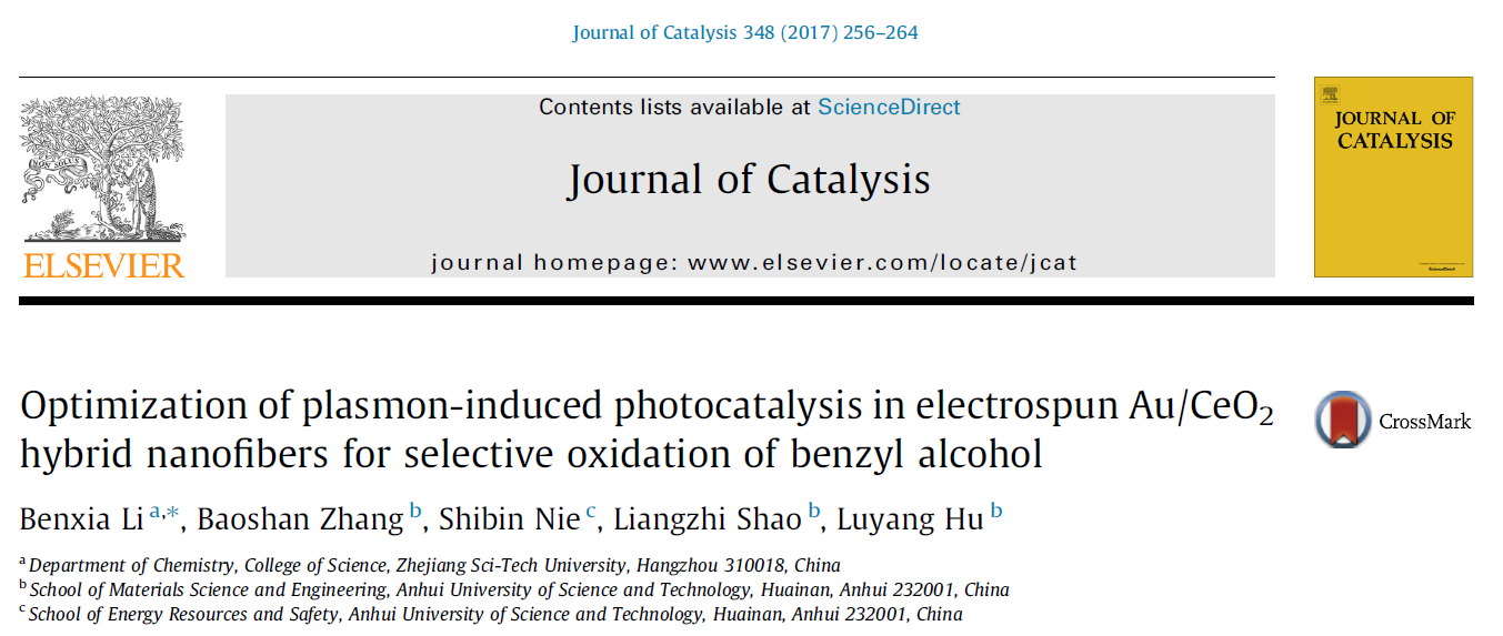當前位置 : 首頁 > 資訊動態(tài) > 論文發(fā)表 > Optimization of plasmon-induced photocatalysis in electrospun Au/CeO2 hybrid nanofibers for selective oxidation of benzyl alcohol
