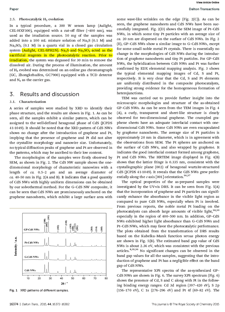 當(dāng)前位置 : 首頁 > 資訊動態(tài) > 論文發(fā)表 > Investigation on graphene and Pt co-modified CdS nanowires with enhanced photocatalytic hydrogen evolution activity under visible light irradiation