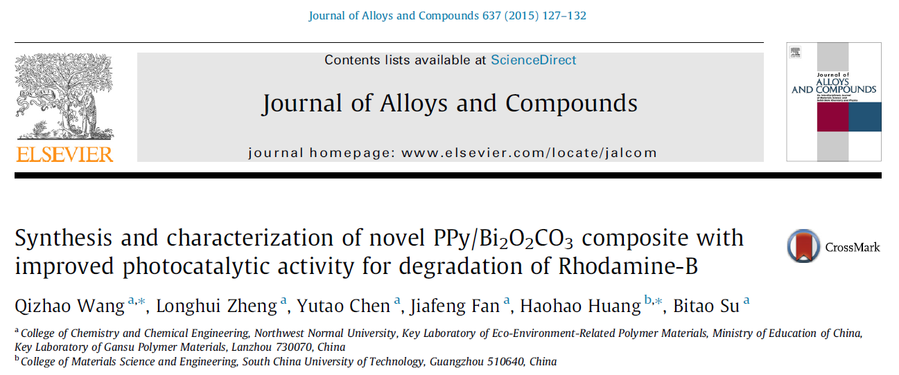 當(dāng)前位置 : 首頁 > 資訊動態(tài) > 論文發(fā)表 > Synthesis and characterization of novel PPy/Bi2O2CO3 composite with improved photocatalytic activity for degradation of Rhodamine-B