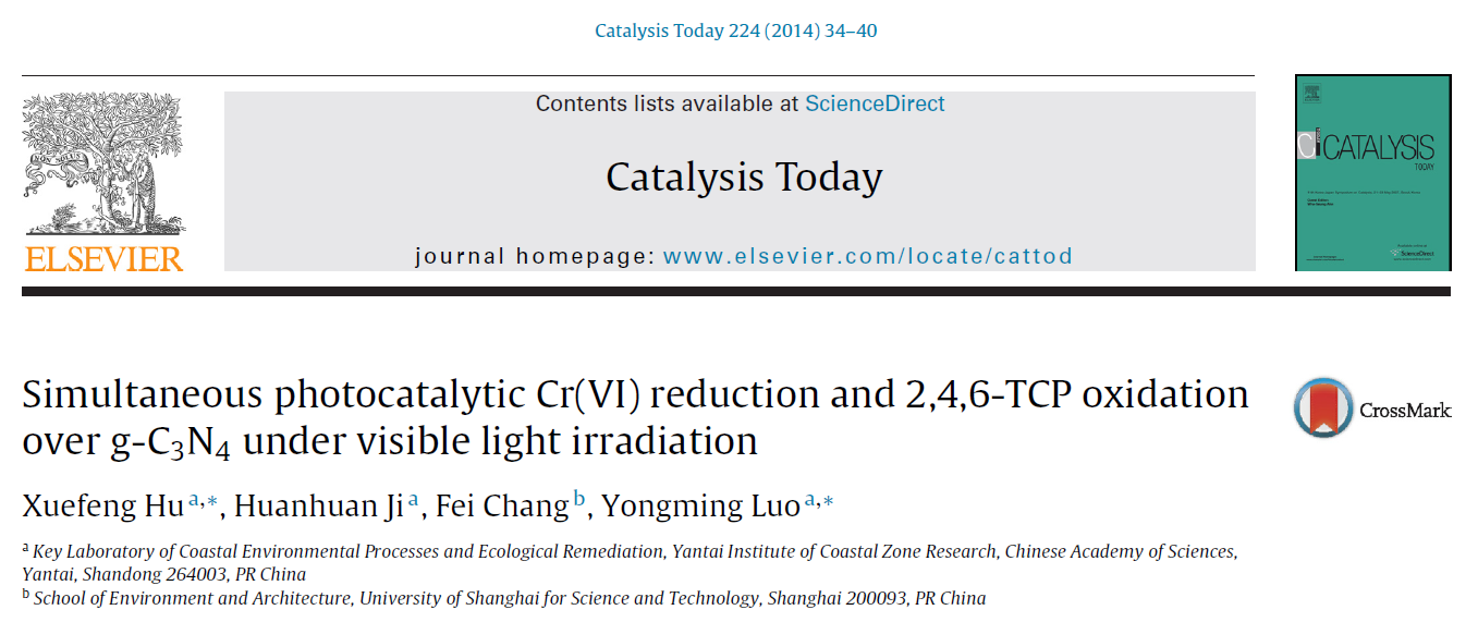 當(dāng)前位置 : 首頁 > 資訊動態(tài) > 論文發(fā)表 > Simultaneous photocatalytic Cr(VI) reduction and 2,4,6-TCP oxidationover g-C3N4under visible light irradiation