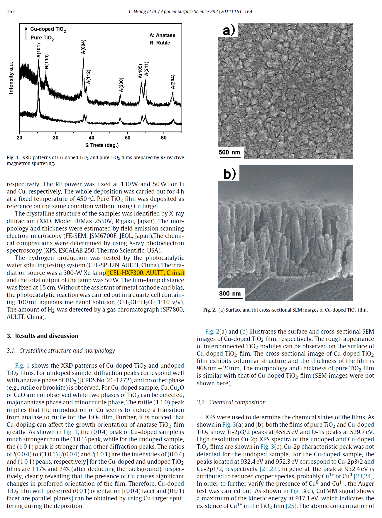 Enhanced hydrogen production by water splitting using Cu-dopedTiO2film with preferred (0 0 1) orientation