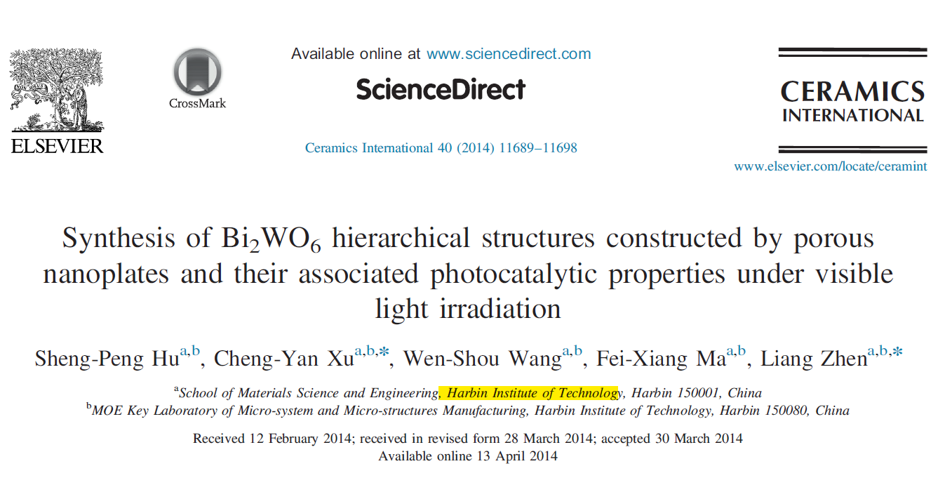 當(dāng)前位置 : 首頁 > 資訊動態(tài) > 論文發(fā)表 > Synthesis ofBi2WO6 hierarchicalstructuresconstructedbyporous nanoplates andtheirassociatedphotocatalyticpropertiesundervisible light irradiation