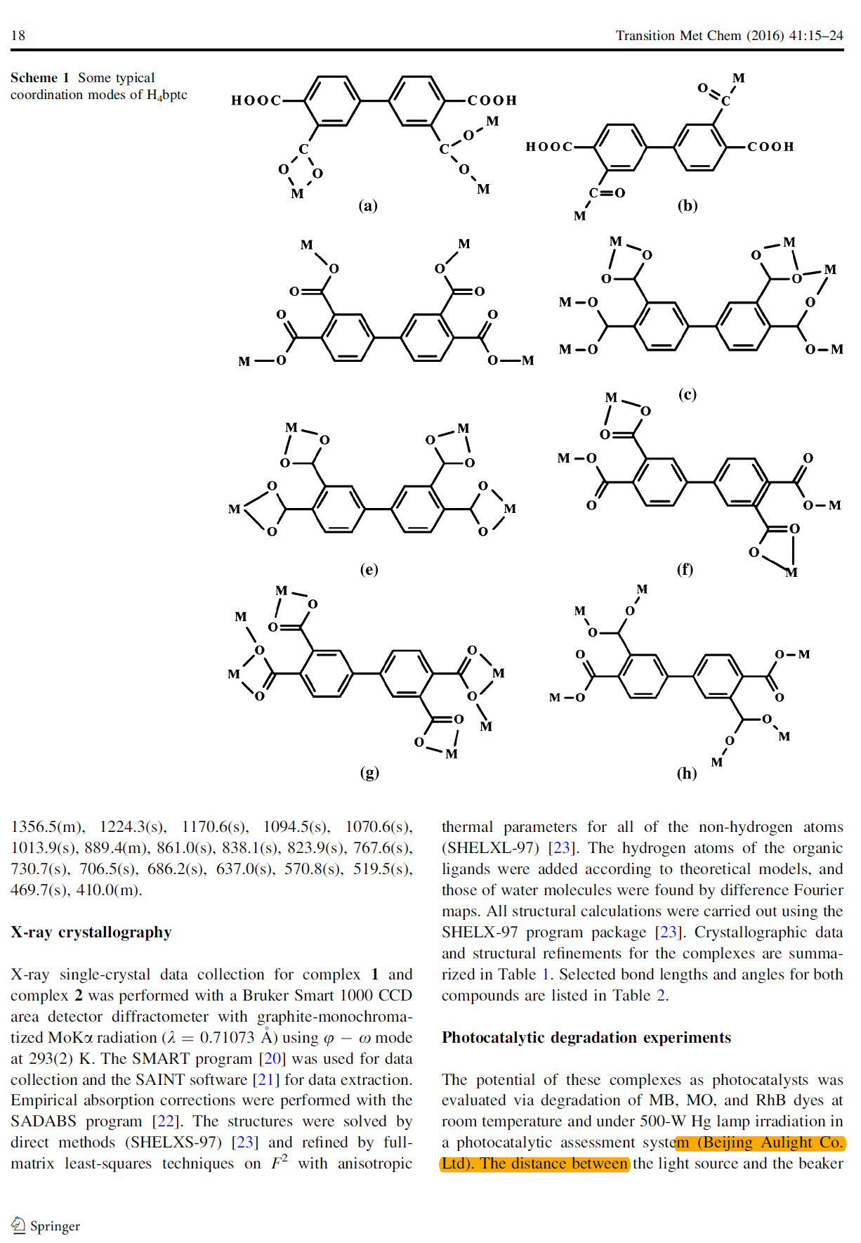 當(dāng)前位置 : 首頁 > 資訊動態(tài) > 論文發(fā)表 > Two 1D coordination polymers constructed from 3,30,4,40- biphenyltetracarboxylic acid and 4,40-bipyridine: hydrothermal syntheses and photocatalytic p