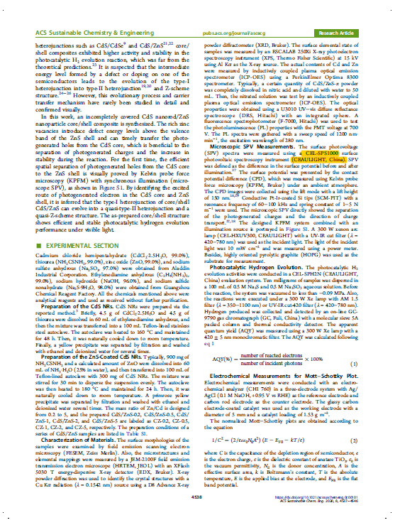 當(dāng)前位置 : 首頁 > 資訊動態(tài) > 論文發(fā)表 > The Evolution from a Typical Type?I CdS/ZnS to Type-II and Z?Scheme Hybrid Structure for E?cient and Stable Hydrogen Production under Visible Light