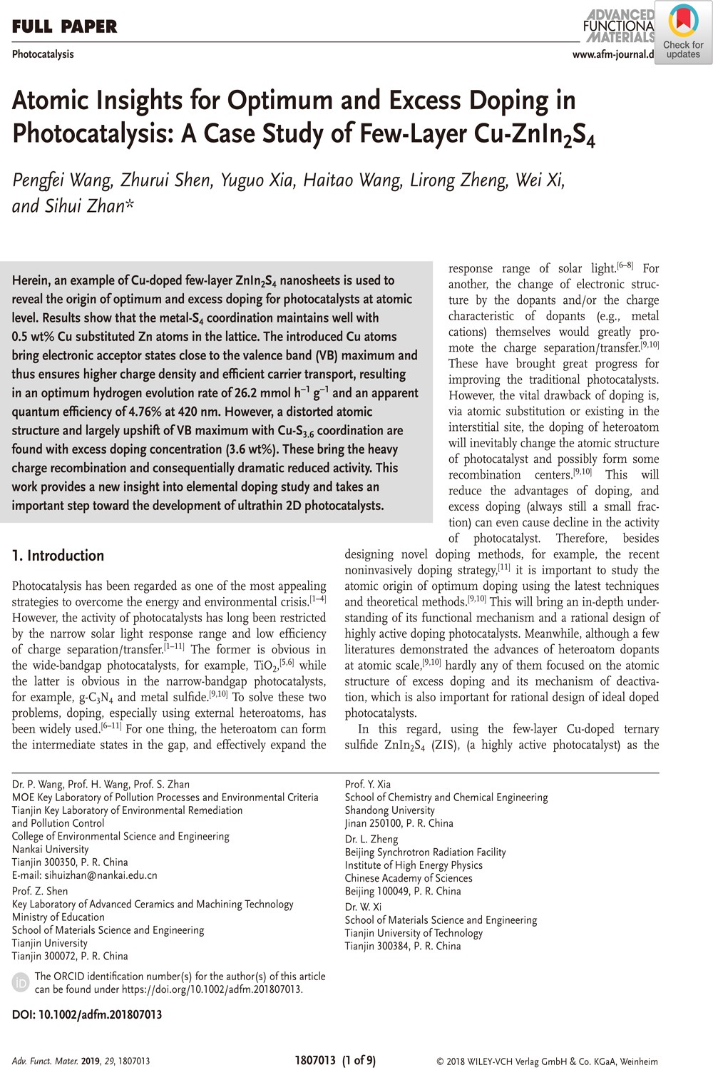 Atomic Insights for Optimum and Excess Doping in Photocatalysis: A Case Study of Few-Layer Cu-ZnIn2S4