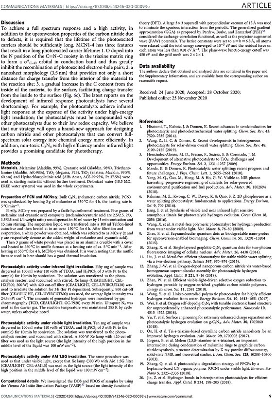 當(dāng)前位置 : 首頁 > 資訊動態(tài) > 論文發(fā)表 > Infrared response in photocatalytic polymeric carbon nitride for water splitting via an upconversion mechanism