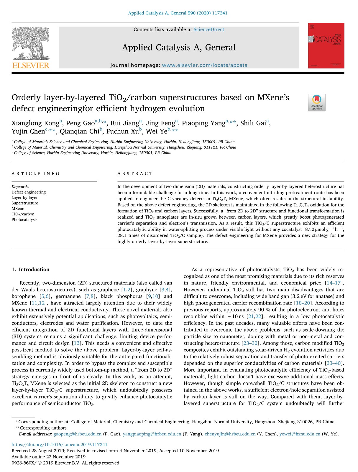 當(dāng)前位置 : 首頁 > 資訊動態(tài) > 論文發(fā)表 > Orderly layer-by-layered TiO2/carbon superstructures based on MXene’s defect engineeringfor e?cient hydrogen evolution