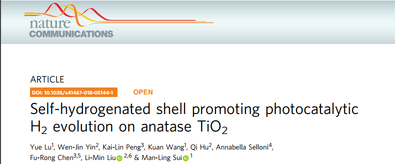 近日,北京工業(yè)大學(xué)固體微結(jié)構(gòu)與性能研究所隋曼齡教授(通訊作者)和盧岳博士(第一作者),與香港城市大學(xué)(原臺灣清華大學(xué))陳福榮教授(共同通訊)和北京航空航天大學(xué)物理學(xué)院劉利民教授(共同通訊)合作,在Nature Communications上發(fā)表了一篇題為“Self-hydrogenated shellpromoting photocatalytic H2 evolution on anatase TiO2”