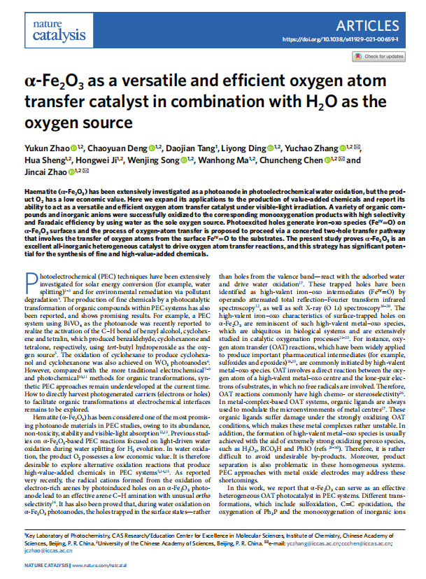 α-Fe2O3以H2O為氧源作為一種多功能、高效的氧原子轉(zhuǎn)移催化劑