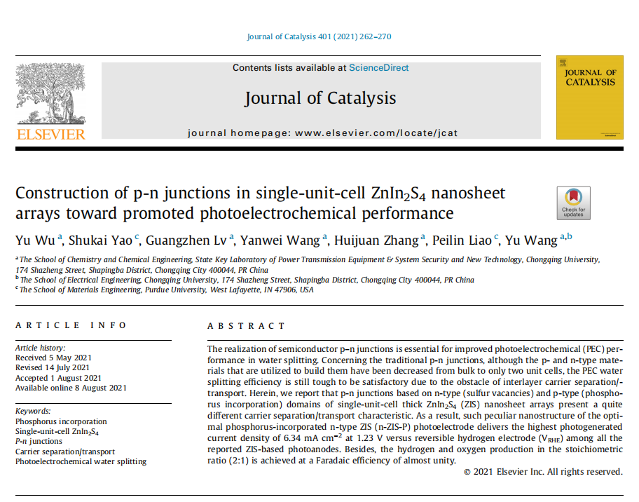 Construction of p-n junctions in single-unit-cell ZnIn2S4 nanosheet arrays toward promoted photoelectrochemical performance | Journal of Catalysis