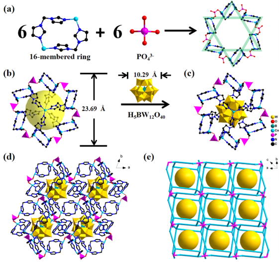 1.利用磷酸根(PO43-)構(gòu)建新型的OMPO框架,并且封裝Keggin型多酸