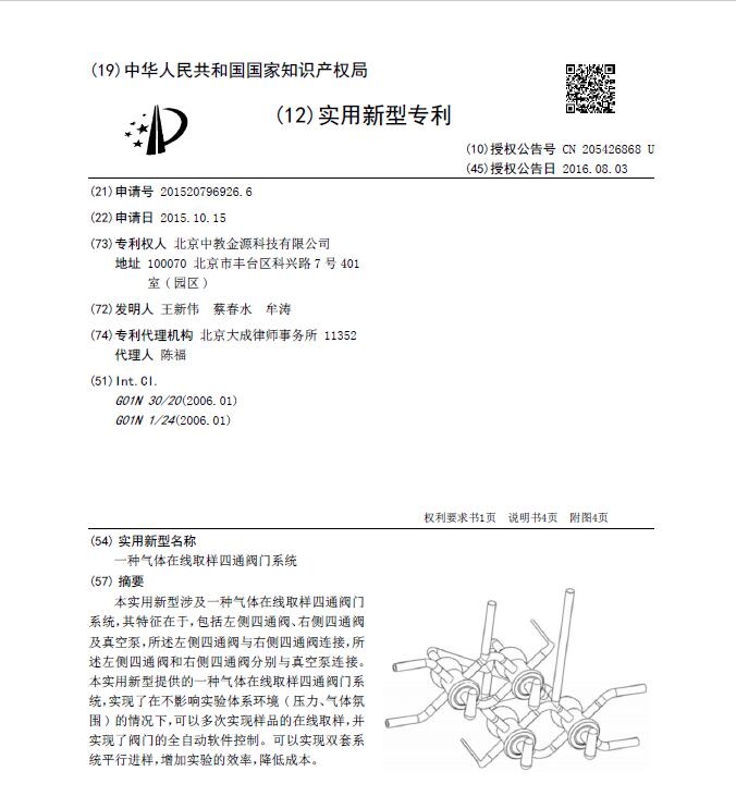本實(shí)用新型涉及一種氣體在線取樣四通閥門系統(tǒng),其特征在于,包括左側(cè)四通閥、右側(cè)四通閥及真空泵,所述左側(cè)四通閥與右側(cè)四通閥連接,所述左側(cè)四通閥和右側(cè)四通閥分別與真空泵連接。本實(shí)用新型提供的一種氣體在線取樣四通閥門系統(tǒng),實(shí)現(xiàn)了在不影響實(shí)驗(yàn)體系環(huán)境(壓力、氣體氛圍)的情況下,可以多次實(shí)現(xiàn)樣品的在線取樣,并實(shí)現(xiàn)了閥門的全自動軟件控制??梢詫?shí)現(xiàn)雙套系統(tǒng)平行進(jìn)樣,增加實(shí)驗(yàn)的效率,降低成本。