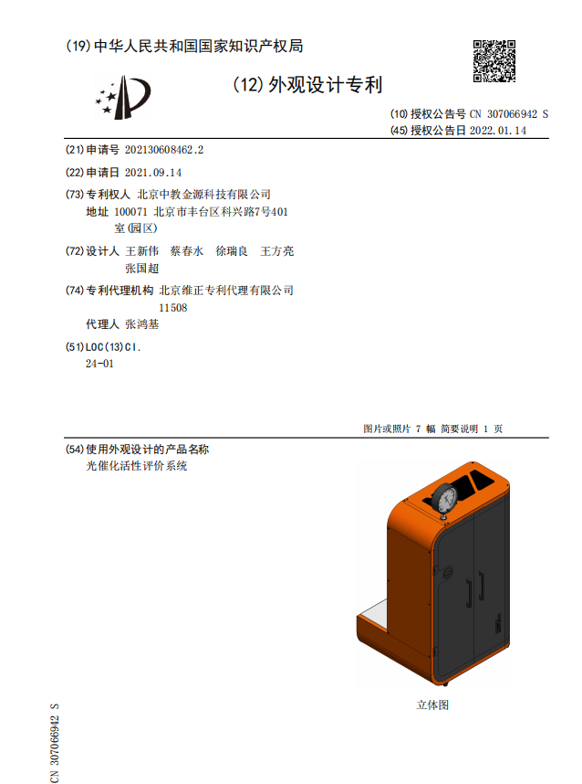 1.本外觀設(shè)計產(chǎn)品的名稱:光催化活性評價系統(tǒng)。2.本外觀設(shè)計產(chǎn)品的用途:本外觀設(shè)計產(chǎn)品用于專業(yè)全自動二氧化碳還原密閉體系分析,兼容光解水、全解水。3.本外觀設(shè)計產(chǎn)品的設(shè)計要點(diǎn):在于形狀。4.最能表明設(shè)計要點(diǎn)的圖片或照片:立體圖。