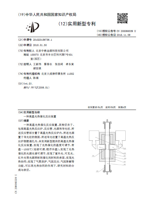 一種高溫光熱催化反應裝置