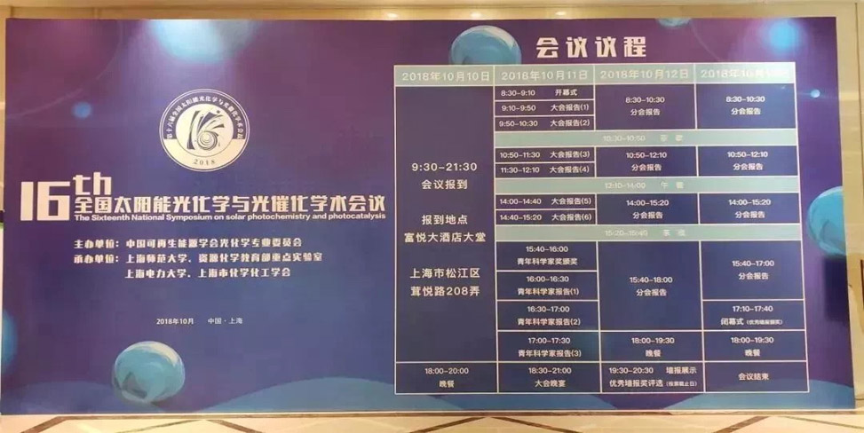 2018年10月10日至13日,由中國(guó)可再生能源學(xué)會(huì)光化學(xué)專業(yè)委員會(huì)主辦,上海師范大學(xué)、上海電力學(xué)院和上海市化學(xué)化工學(xué)會(huì)聯(lián)合承辦的第十六屆全國(guó)太陽能光化學(xué)與光催化學(xué)術(shù)會(huì)議在上海富悅大酒店圓隆重召開。