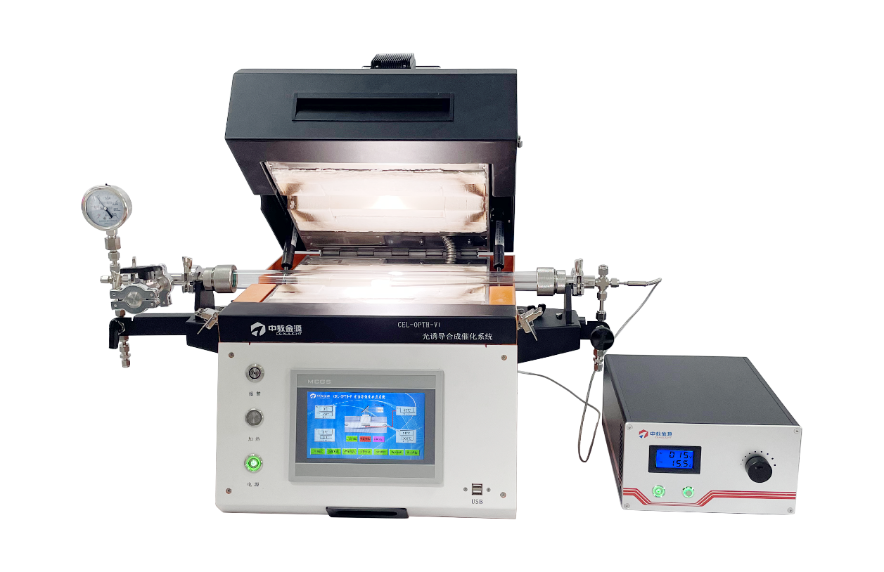 CEL-OPTH-Ⅵ光誘導(dǎo)合成催化系統(tǒng)(光熱協(xié)同),在光誘導(dǎo)的作用下,實(shí)現(xiàn)催化新材料的合成與光熱催化活性的表征。系統(tǒng)由高溫反應(yīng)爐、石英反應(yīng)管、法蘭接頭、導(dǎo)光柱、控制臺(tái)等一體組成,該系統(tǒng)的優(yōu)勢(shì)是在高溫加熱過程中,上方選配的氙燈光源產(chǎn)生的光可通過導(dǎo)光柱由外向內(nèi)導(dǎo)入石英反應(yīng)管并照射到反應(yīng)樣品上,實(shí)現(xiàn)了光熱催化協(xié)同作用。