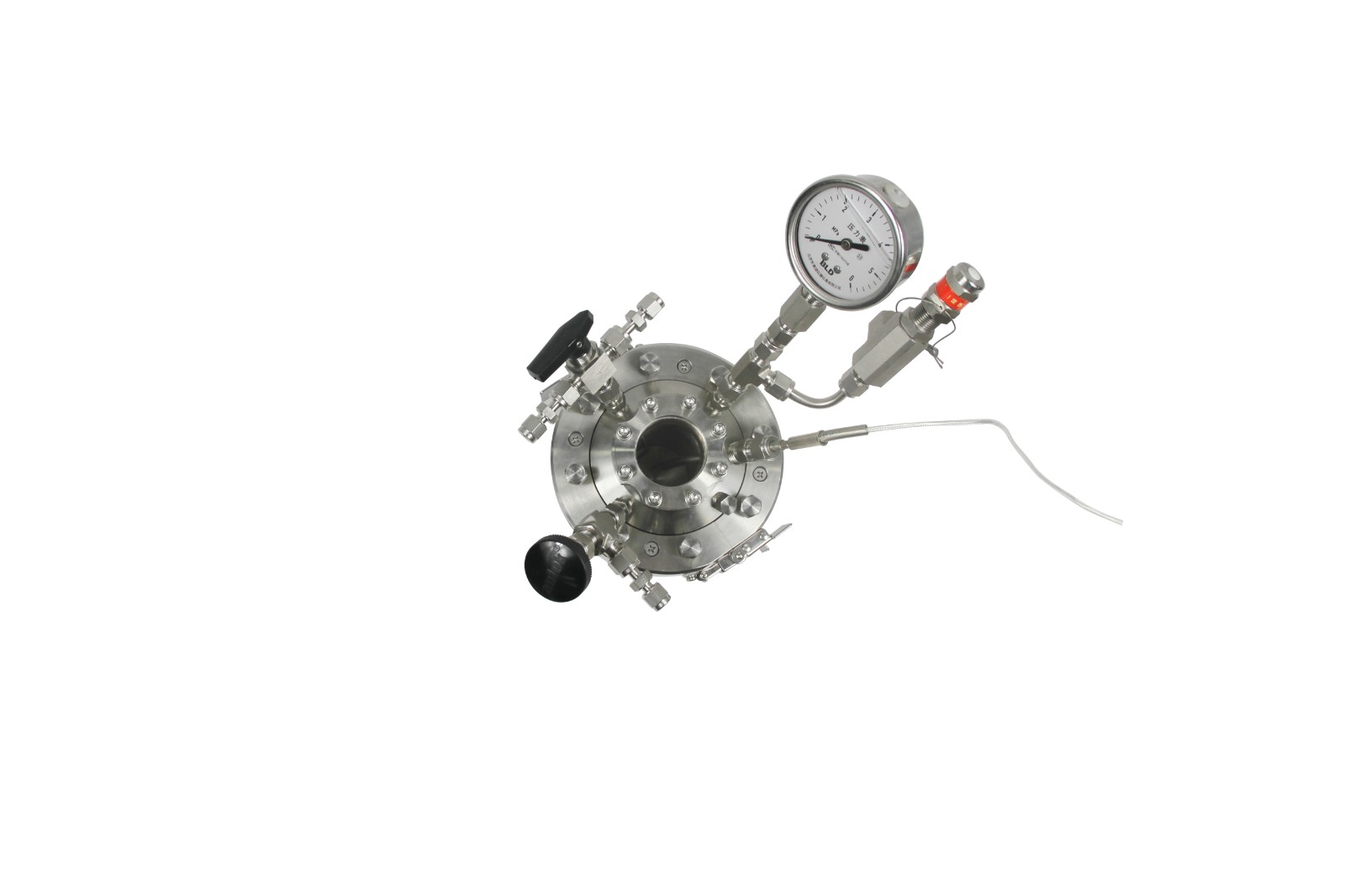 8) 配置美國anlok高質(zhì)量針型閥、三通球閥、壓力表,實現(xiàn)了靈活控制釜體壓力;