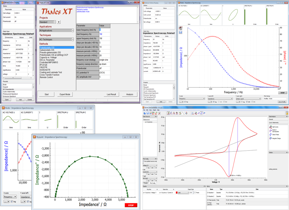 Thales XT電化學測試軟件包括循環(huán)伏安、階躍、脈沖、直流腐蝕、交流阻抗測試和等效電路擬合軟件: