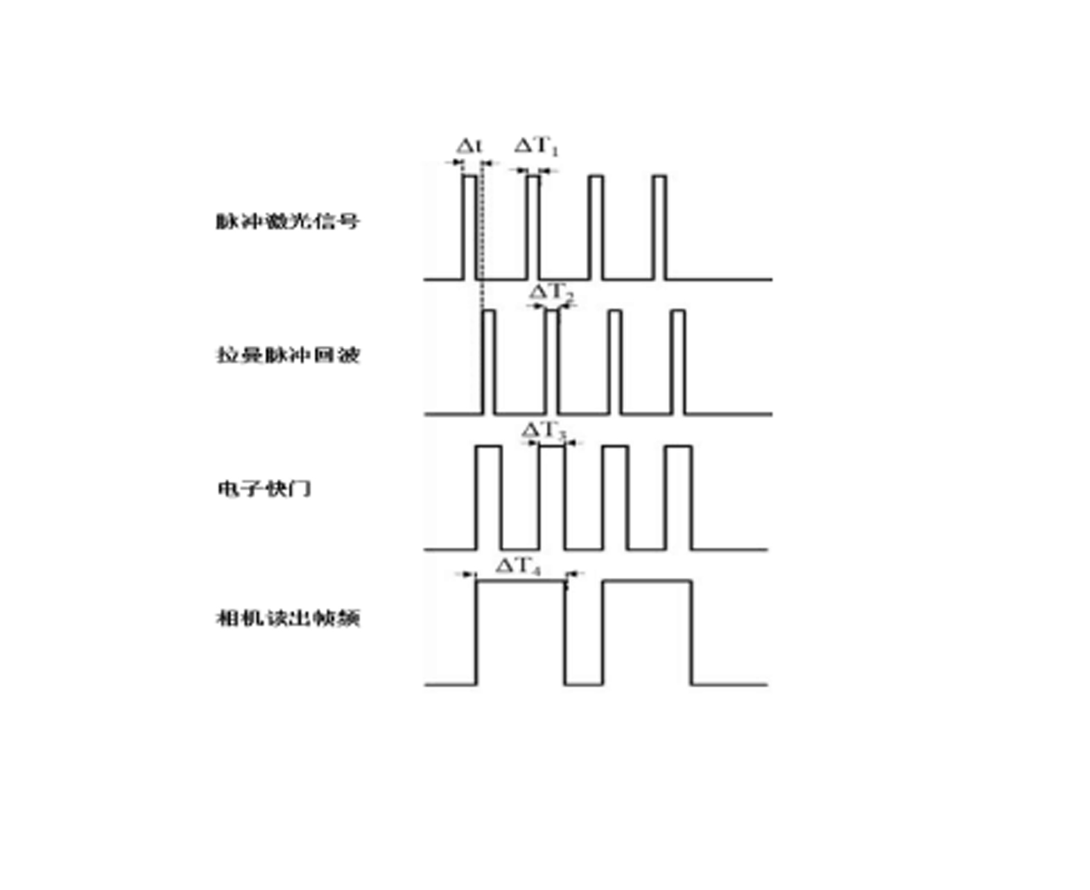 高重頻脈沖激光器的拉曼光譜系統(tǒng)時(shí)序控制原理如下圖2.2。其中,Δt為觸發(fā)高重頻脈沖激光與拉曼信號(hào)的時(shí)間延遲,帶寬分別為ΔT1、ΔT2,其電子快門(mén)脈寬ΔT3>ΔT2,因單光子相機(jī)的幀頻低于脈沖激光器工作頻率,單光子相機(jī)對(duì)多脈沖信號(hào)的單光子計(jì)數(shù)進(jìn)行累加采集,則在單光子相機(jī)單幀曝光時(shí)間(ΔT4)內(nèi)累加多個(gè)脈沖信號(hào)。