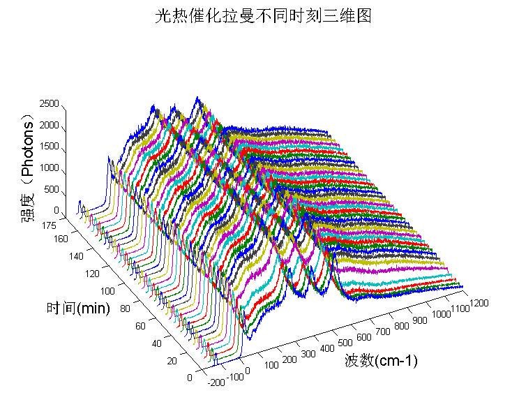 保存好的數(shù)據(jù)可以用任何軟件處理。如下圖4.3,4.4所示。單幀數(shù)據(jù)處理與時(shí)序模式處理數(shù)據(jù)結(jié)果。通過(guò)對(duì)拉曼峰的研究得到樣品的分子振動(dòng),濃度和取向以及物質(zhì)的力學(xué)性質(zhì)。